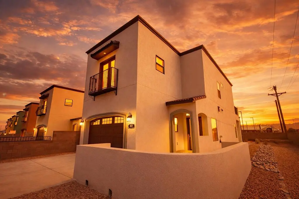 Ask about our February SWEETHEART CASH special offer! Welcome to 402 Lala, a beautifully constructed three-bedroom, two-and-a-half-bathroom home offering 1,560 square feet of comfortable living space. Nestled in a prime location, this home provides easy access to shopping, dining, and all the conveniences in the heart of Belen. Step inside to find a spacious and inviting floor plan, featuring a bright living area perfect for relaxing or entertaining. The kitchen is well-equipped with ample cabinetry and counter space, making meal prep a breeze. Upstairs, the primary suite boasts a private bathroom, while two additional bedrooms share a full bath. A convenient half-bath is located downstairs for guests. Enjoy the added benefit of an oversized 1 car garage with plenty of storage space.